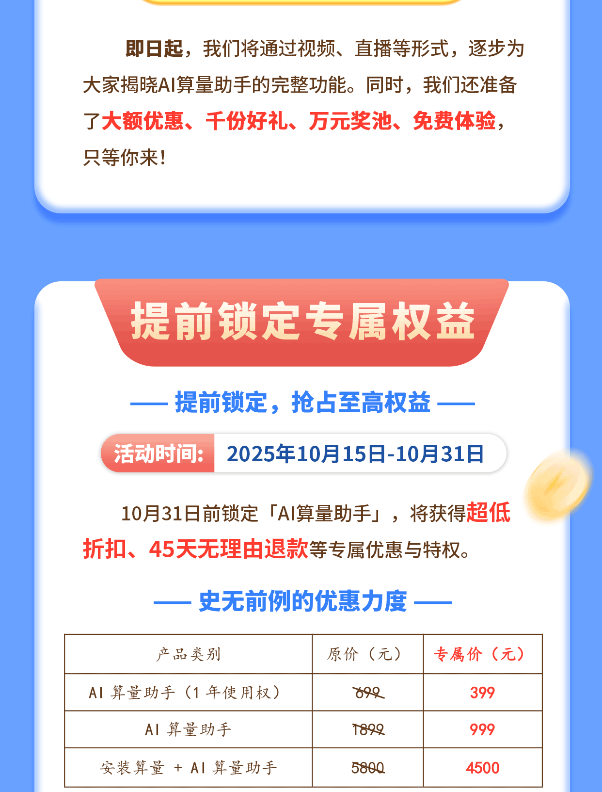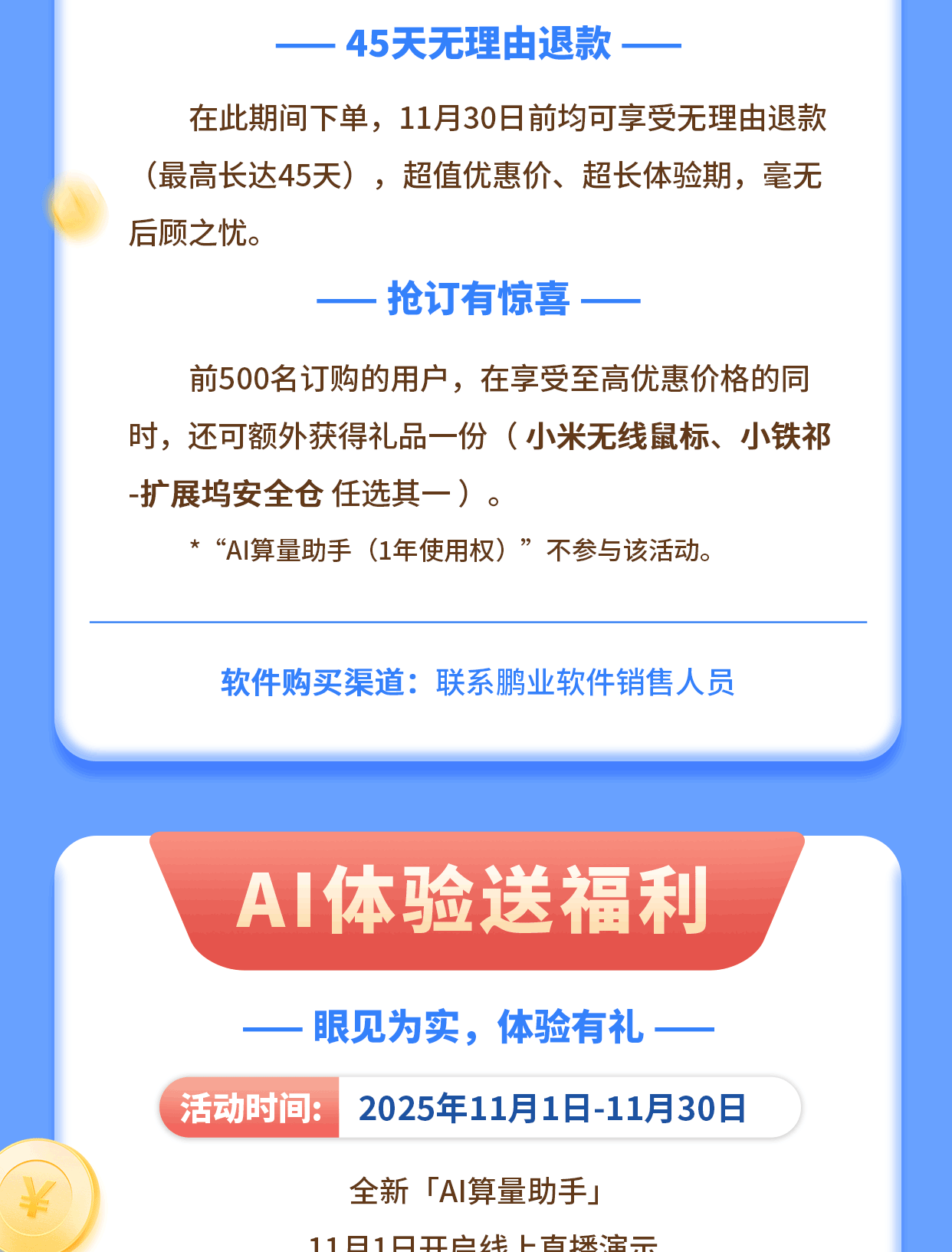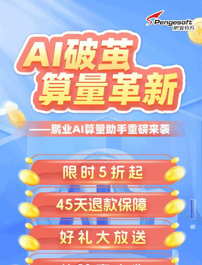鹏业AI算量助手重磅来袭——限时5折起,45天退款保障